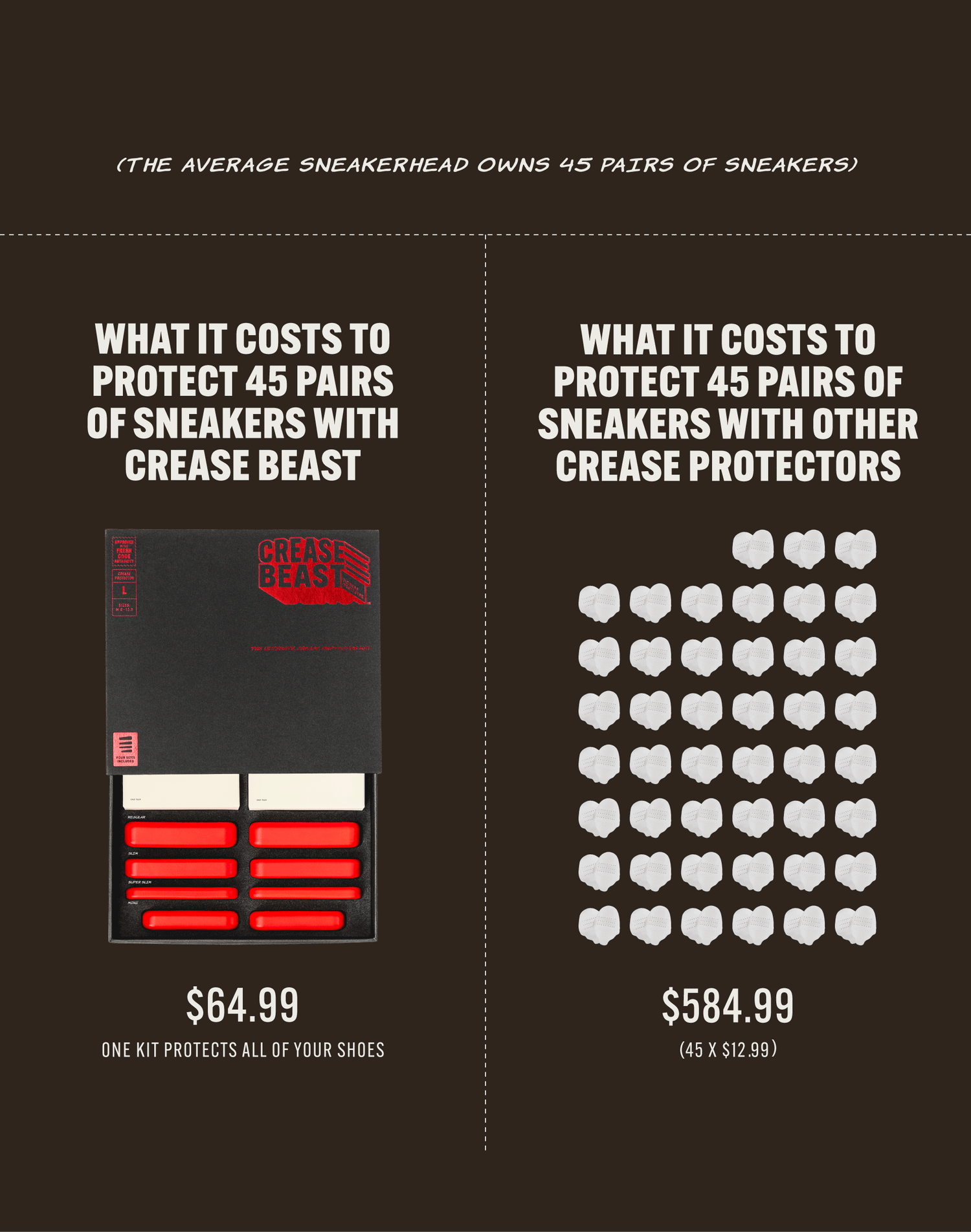 The Crease Beast is a premium quality, multi-usage crease protector. Its versatility allows the user to wear them in any shoe that they choose. They also don’t need to be replaced as frequently which makes them the less expensive option over time in comparison to buying other crease protectors.