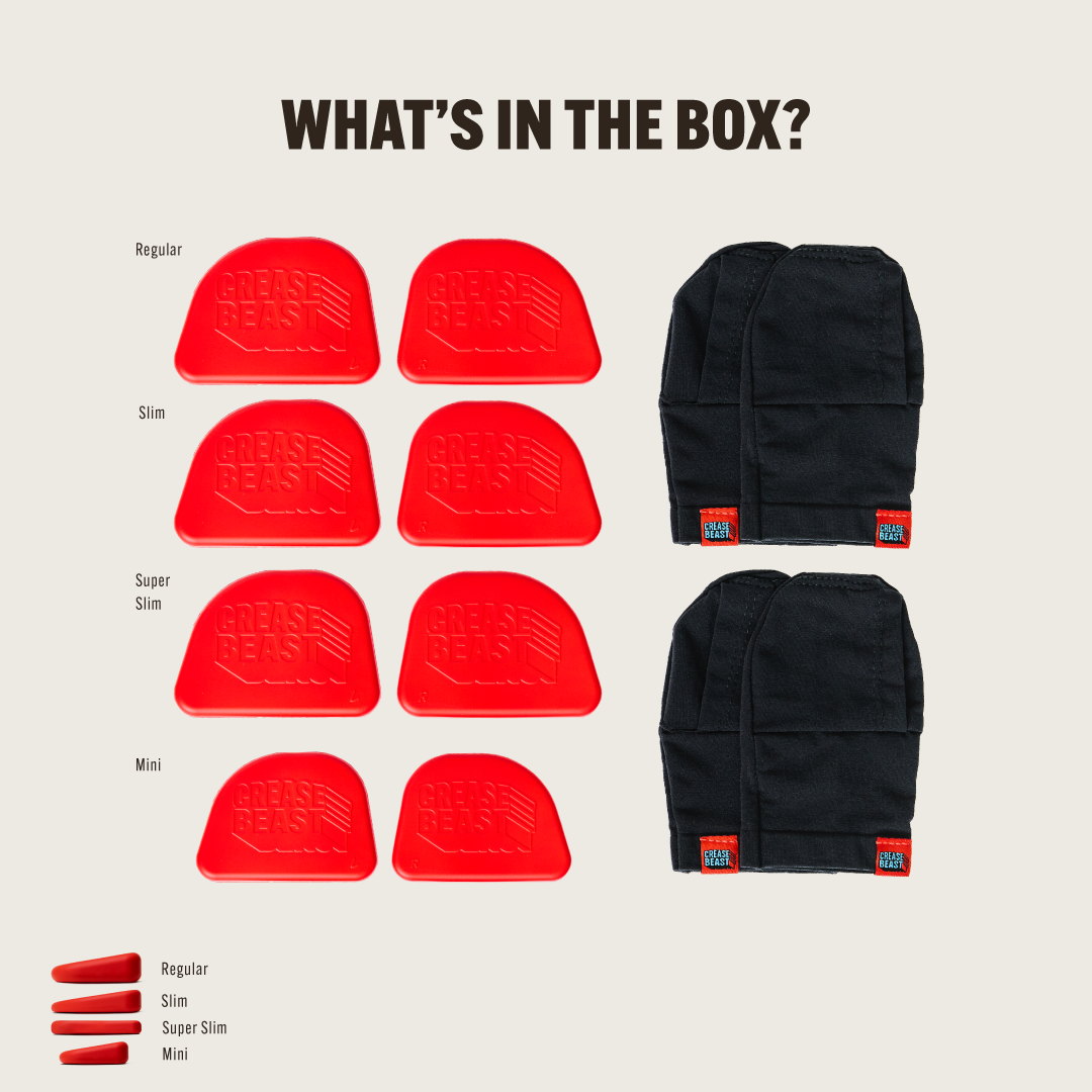 The Ultimate Kit replaces all previous models (The Crease Beast, The Crease Beast Slim, The Crease Beast Duo, The Crease Beast Mini, The Crease Beast XL and The Crease Beast Super Slim). One Ultimate Kit protects all of your sneakers.